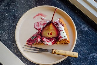 Hazelnut cake with poached pears & mascarpone cream