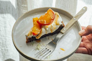 Summery walnut cake with peaches